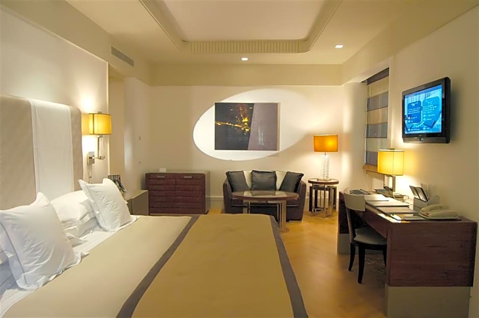 The junior suite features 3 windows overlooking the city and a cozy living area. It has an elegant contemporary design. All rooms feature a 49-inch LCD TV, mini-bar and private bathroom. This room offers an access to the wellness center.