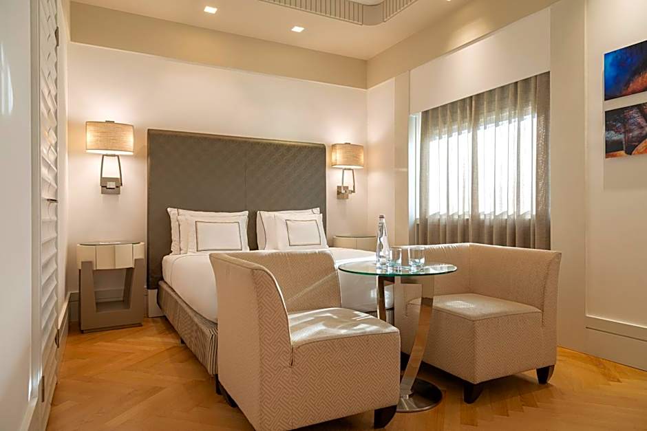 This room has an Art Deco design with elegant fabrics and a bed with an upholstered headboard. All rooms feature a 40-inch LCD TV, mini-bar and private bathroom.