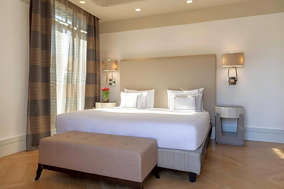 This luxury suite is on the top floor and has a private terrace overlooking Genoa and the Mediterranean Sea. It features separate living and sleeping areas, a 49" LCD TV, a walk-in wardrobe and a marble bathroom. This room offers an access to the wellness center.